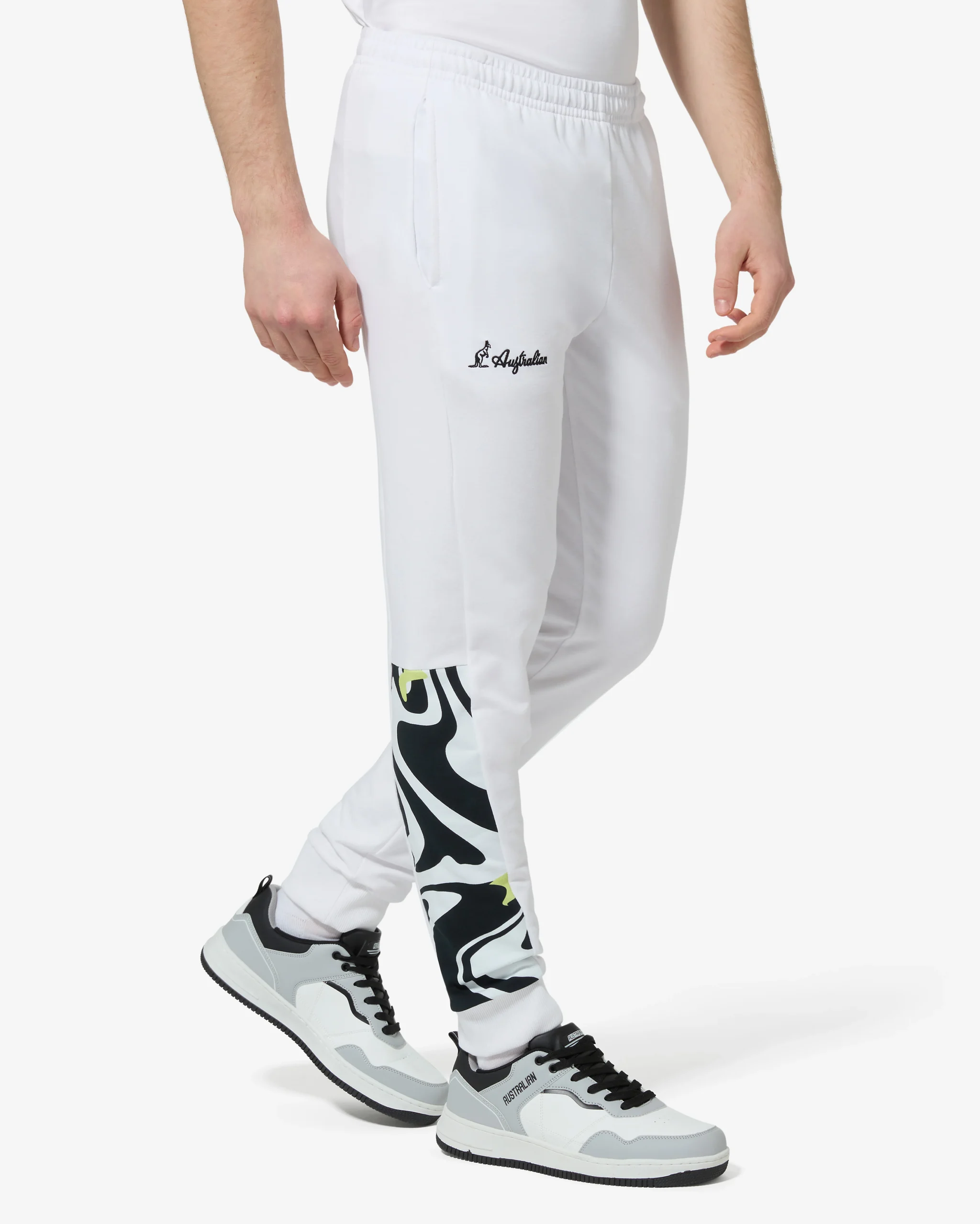 – Pantalone in felpa elasticizzata – Elastico in vita con coulisse regolabile– Polsini in costina– Inserti con stampa digitale– Tasche laterali – Logo “Landscape” ricamato– Made in Italy